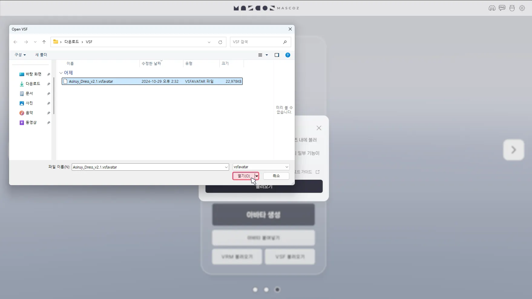 這麼一來,就能在MASCOZ使用自己所擁有的VSF角色啦!