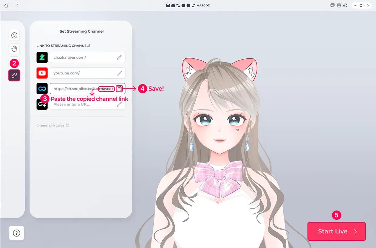 Now log in to MASCOZ and continue setting up for your live stream. Once you’ve completed the steps below, you are done entering your channel