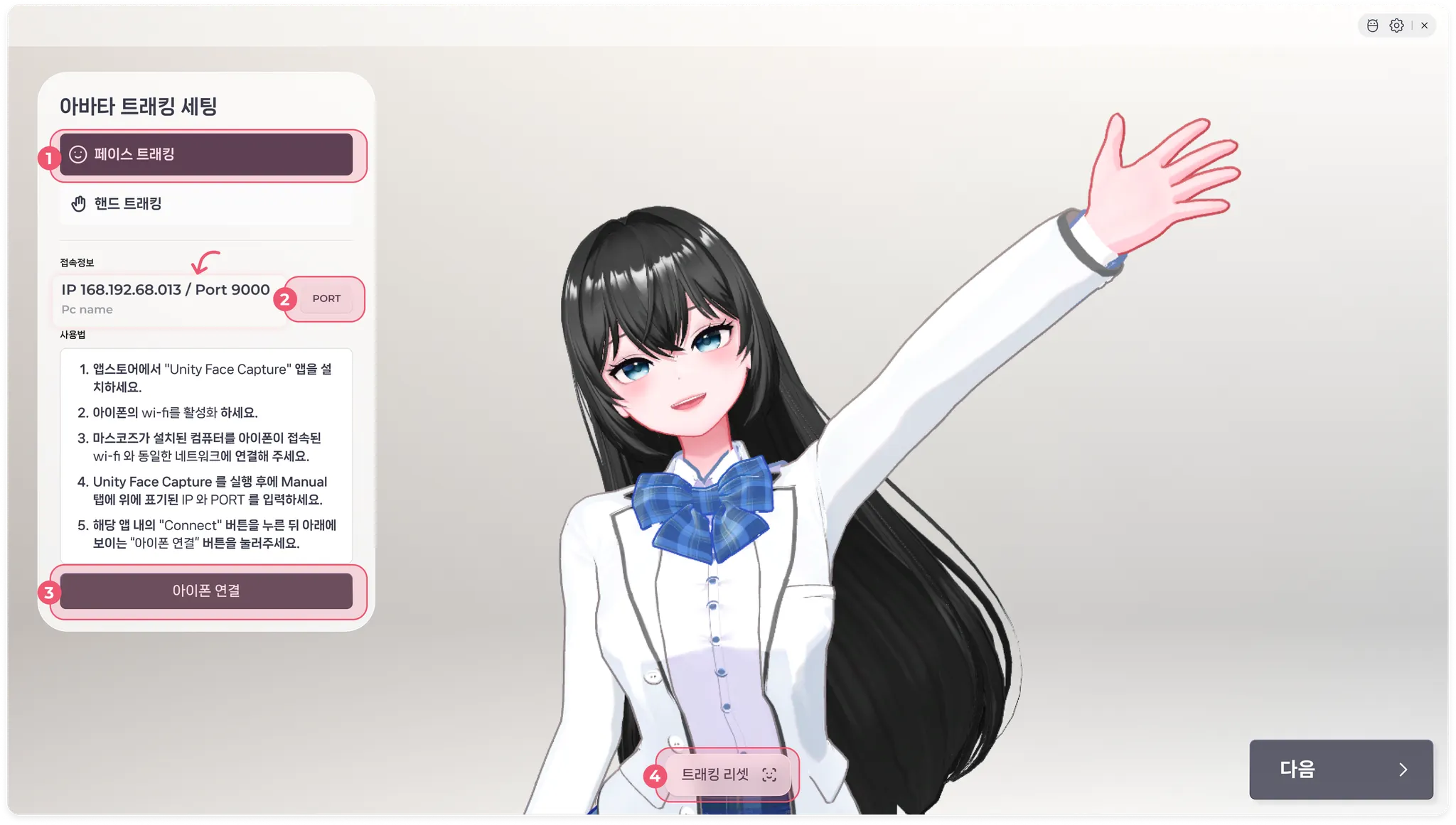 (5) The [Next] button will activate once face tracking is ready. Start streaming right away by pressing the [Next] button if you want. |